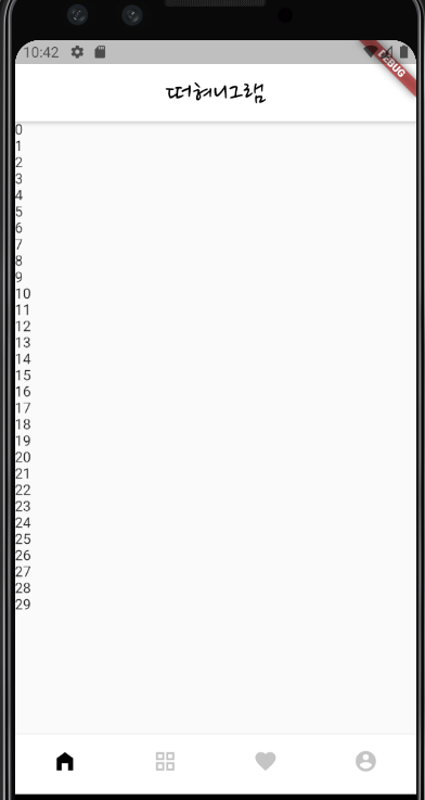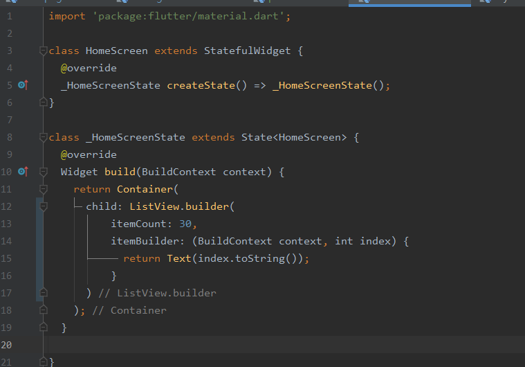 itemCount에 대충 30개를 넣어봅시다. itemBuilder에는 저렇게 똑같이 적어보도록해요.