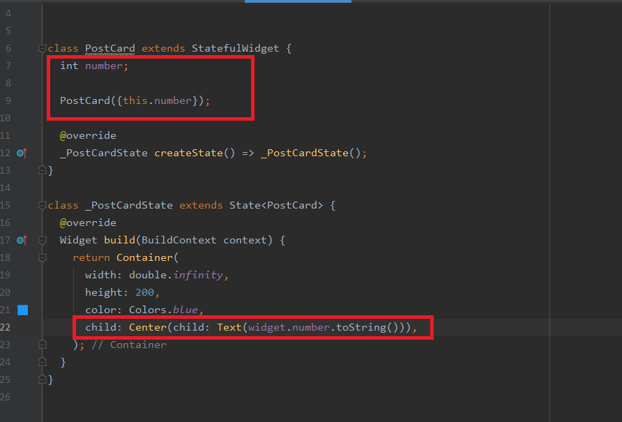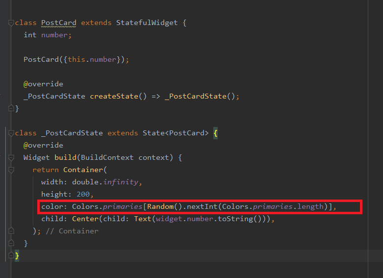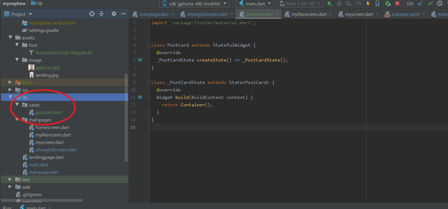 그래서 lib에 cards라는 폴더를 만들어서 다트파일 하나 만들고 그안에 PostCard라는 클래스를 만들어줬어요.
