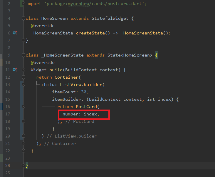 그리고 homeScreen PostCard 리턴하는 부분에 인수로 인덱스를 넘겨줘요.