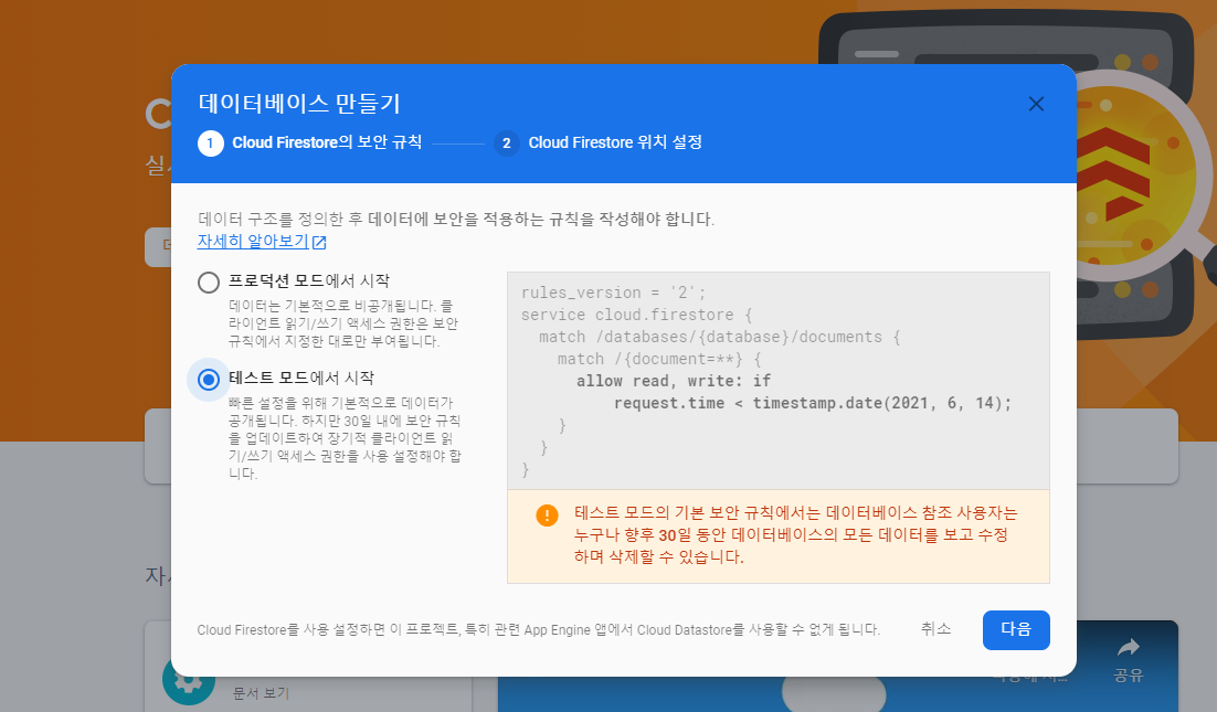 7. FireStore (데이터베이스) 생성하기