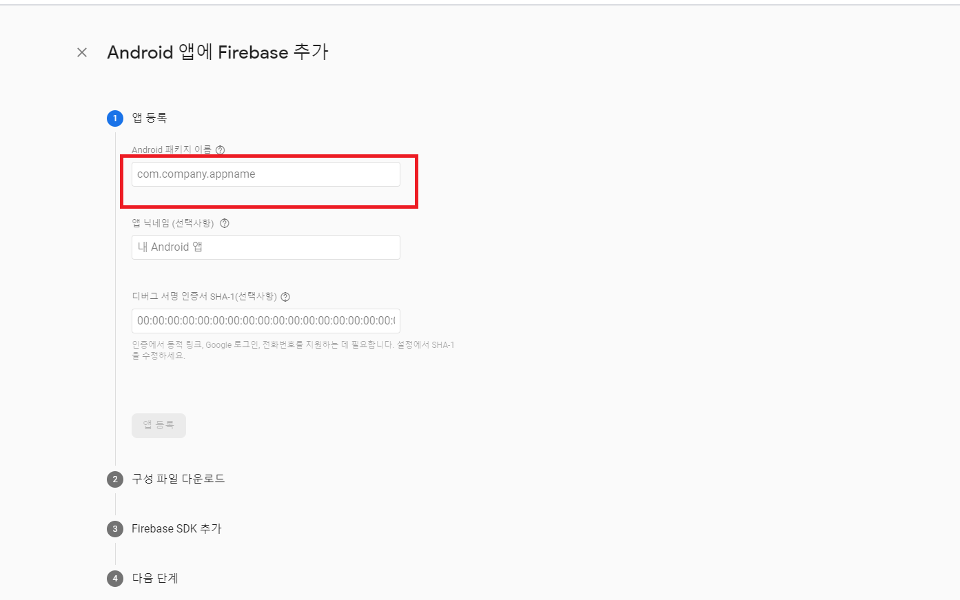 일단은 안드로이드 앱 1개만 등록해봅시다.