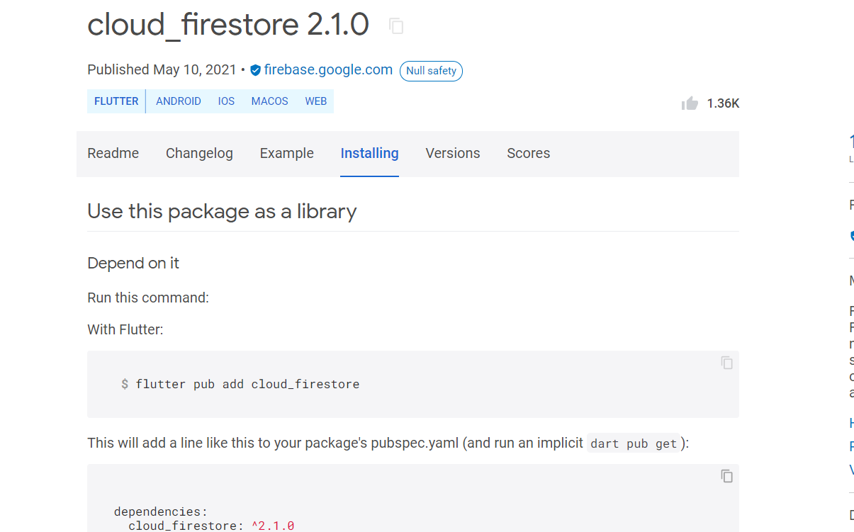구글에 flutter cloud_firestore 라고 검색합니다.