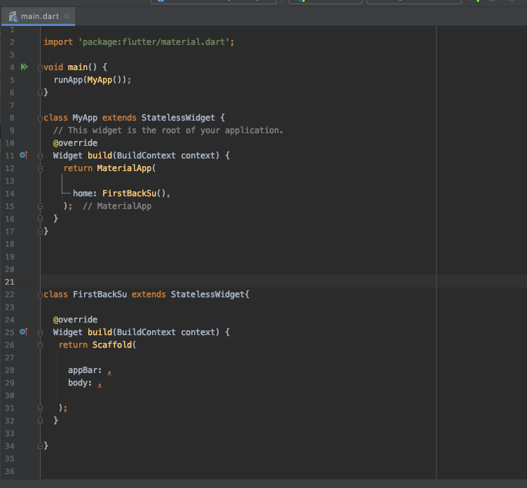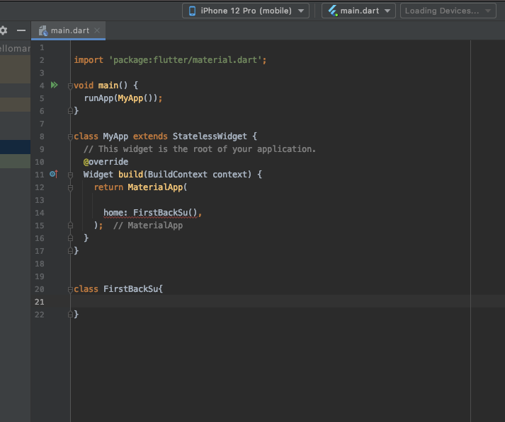 FirstBackSu 라는 내가 마음대로 지은 이름뒤에 extends StatelessWidget 을 붙여주었습니다.