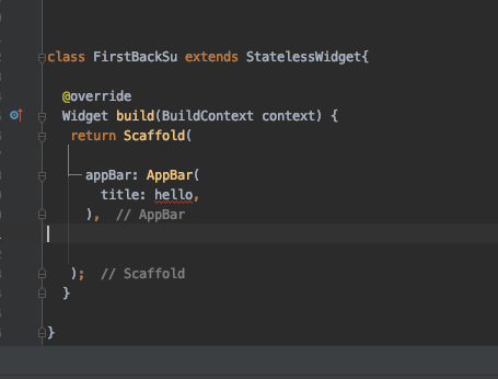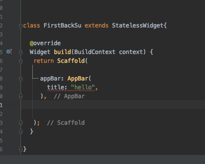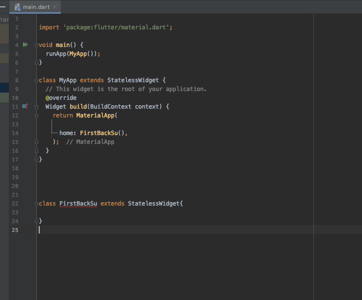 이뜻은 FirstBackSu 라는 class가 StatelessWidget 처럼된다. 뭐 이런거라고 받아들이면됩니다.