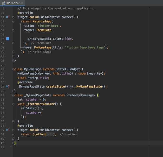 이 return Scaffold 를 가지고 있는 클래스의 이름은 MyHomePage 가 아니라 _MyHomePageState 라는 놈인것이죠.