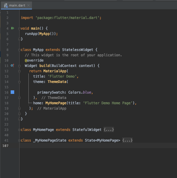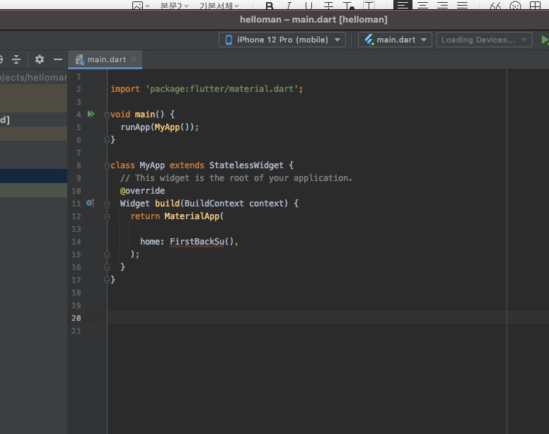 main.dart 라는 다트 파일 제일 상단에 보시면