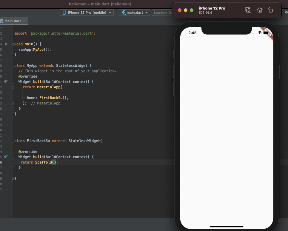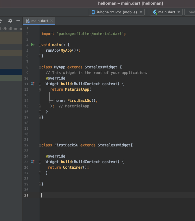 먼저 MaterialApp의 home 부분에 위젯을 넣어줘야합니다.