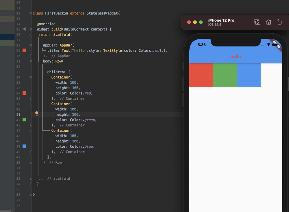 이렇게 Container , Column , Row를 적절히 활용해서 레이아웃을 짜게 됩니다.