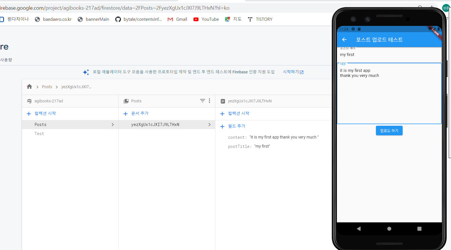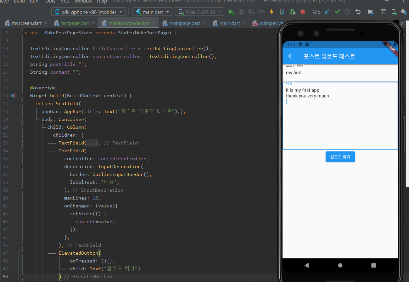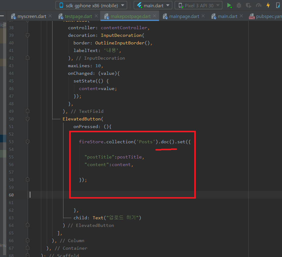 업로드 하기를 누르면 파이어스토어 데이터베이스에 업로드 되게 할거에요.
