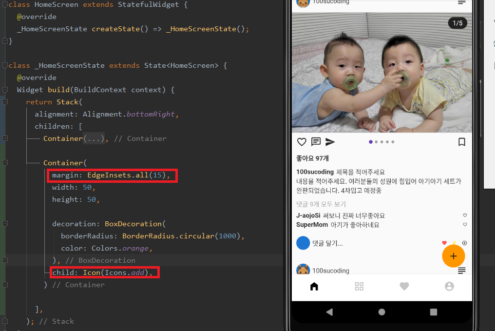 그다음 적당히 마진을 주고, 내부에 + 아이콘을 주세요.