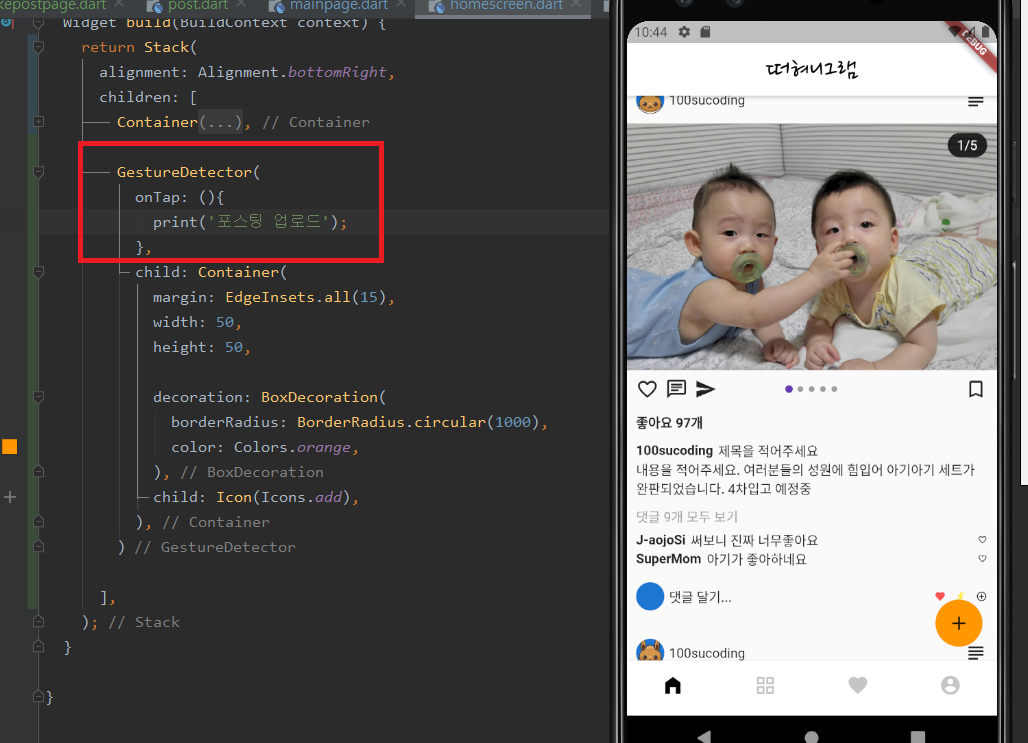 먼저 onTap 을 눌렀을때 포스트를 작성하는 페이지로 가야하겠죠
