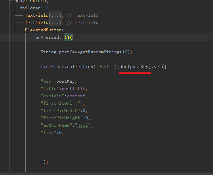 onPressed 부분에 firestore 에 실제 값을 넣는 함수를 적어줄거에요.