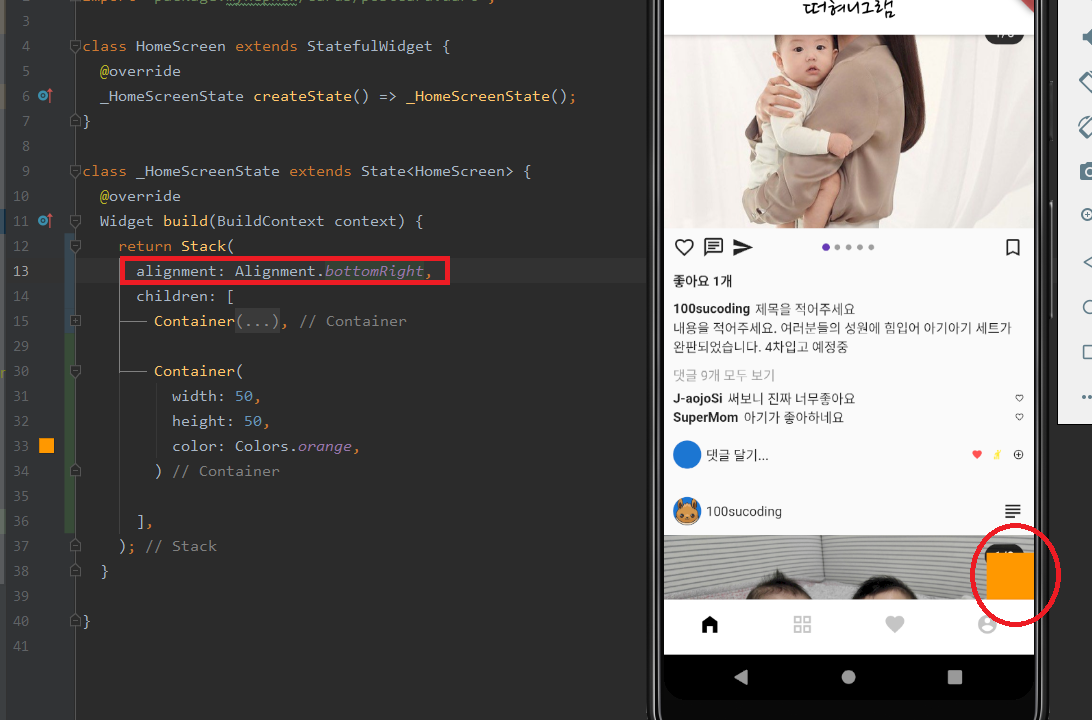 alignment 라는 옵션을 bottomRight 로 하니 정말 오른쪽 하단으로 가게 되었네요.