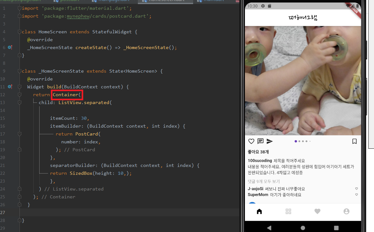 | 플러터로 SNS어플 만들기 8.페이지뷰 활용하여 이미지 스와이핑 (0) | 2021.05.19 |