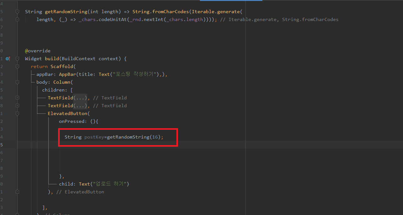 이렇게 작성하면 postKey 라는 변수는 16자리의 숫자포함 랜덤글자를 가지게되죠.