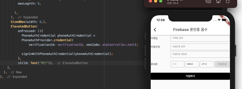 이렇게 꼼수 적으로 Firebase PhoneAuth 를 사용해서 폰인증을 해보았어요.