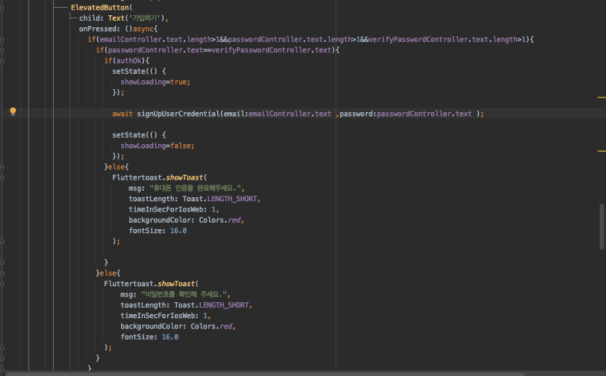 그리고 email 과 password를 받고 일반적인 이메일로 Auth 가입하기 절차를 따르게 돼요.