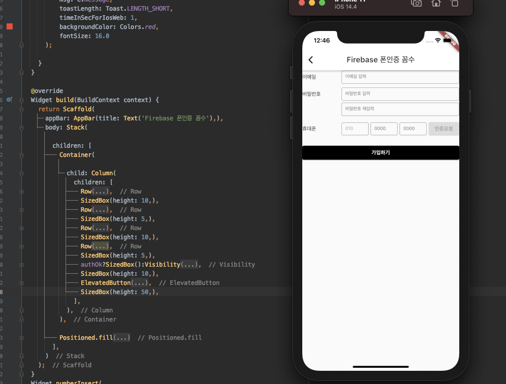 그래서 이 함수가 실행이되면 4. 단계 쭉 아래에서 생성된 PhoneAuthCredential 정보로 phoneAuth 가입을 시도하고,