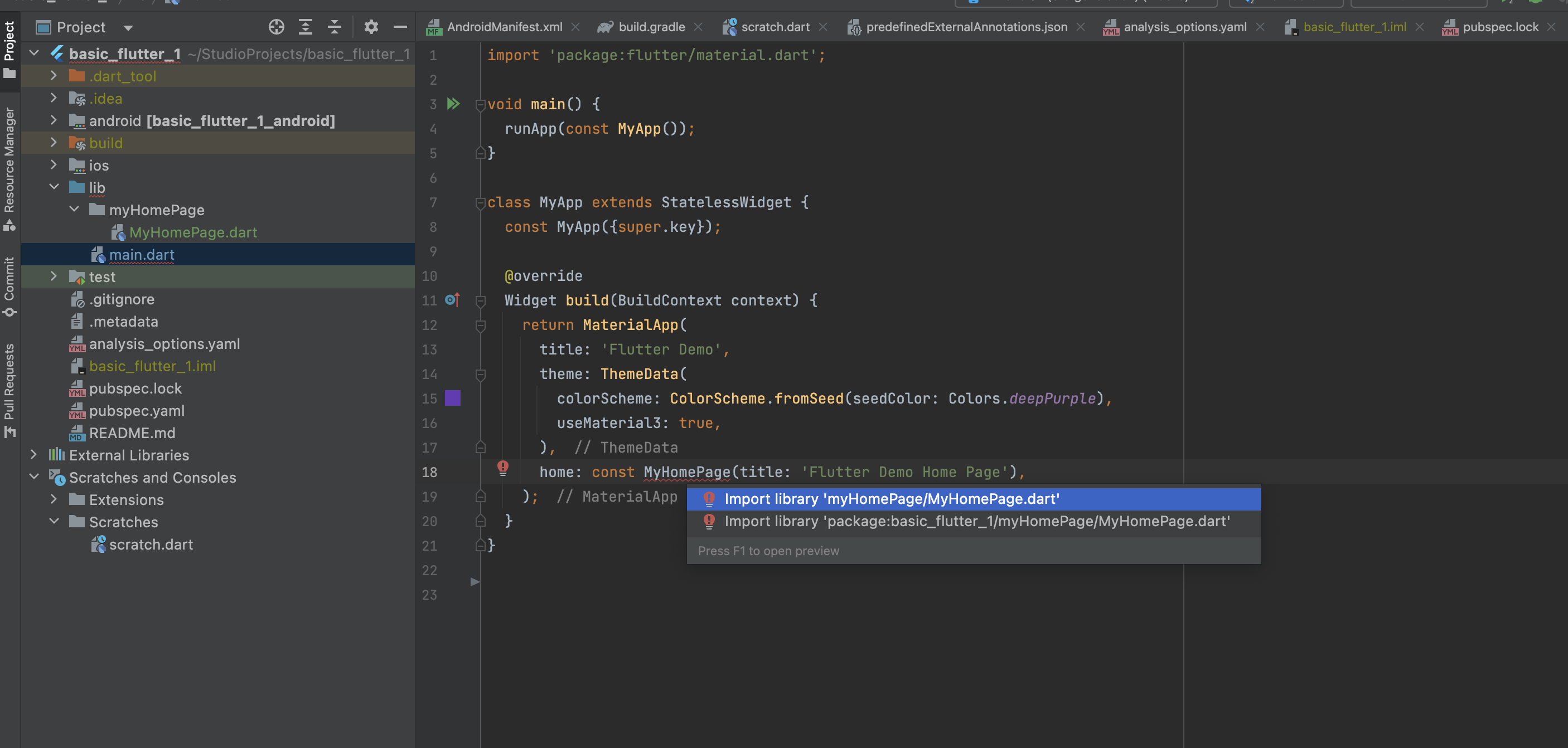 일단은 basic_flutter_1 이라는 우리가 만든 패키지를 봅시다.