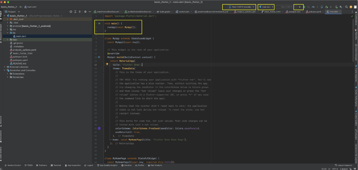 지금 예시로 준 main.dart 파일 에는