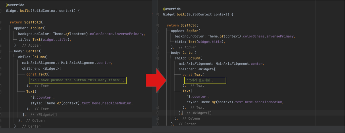 위에보면 _counter 라는 변수와 _incrementCounter() 라는 함수가 보이는데 이건 중요하지만 지금다룰것은 아니니까