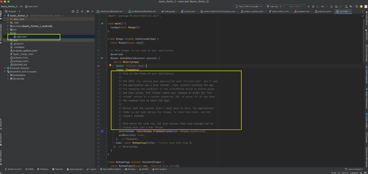android 폴더 , ios 폴더 , lib 폴더 와 pubspeck.yaml 파일이 존재한다는걸 인식하도록 합시다.