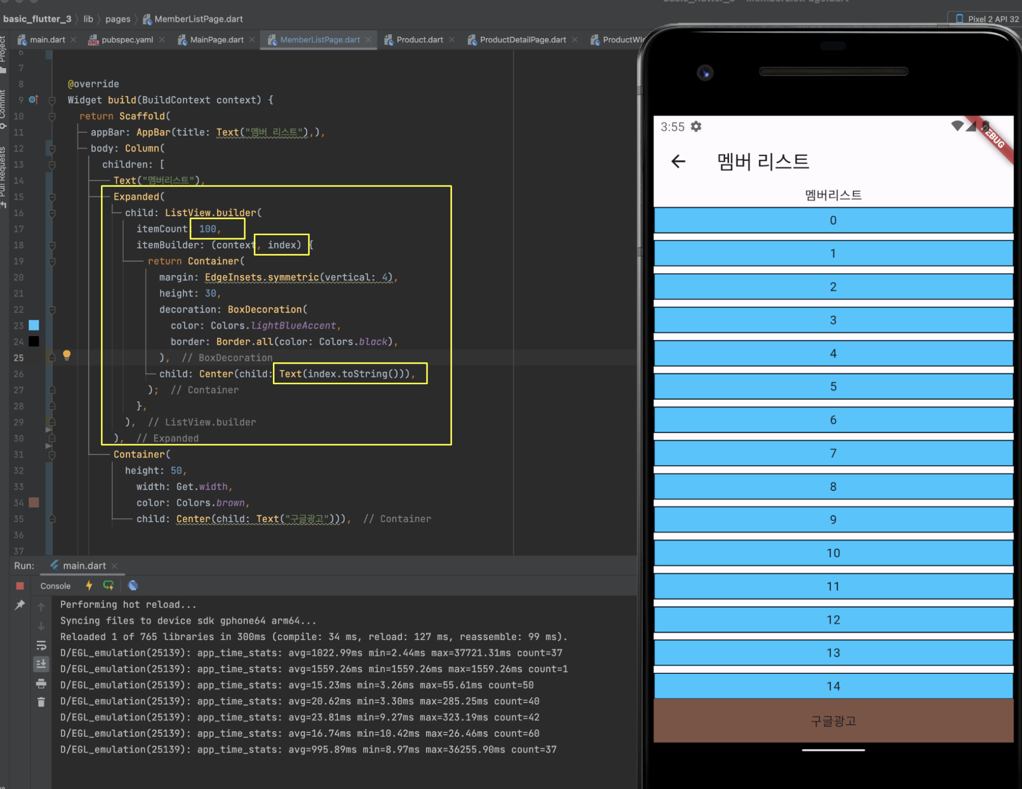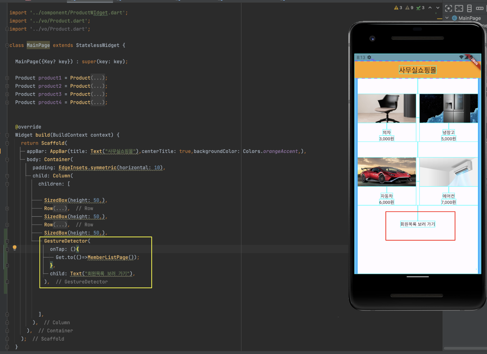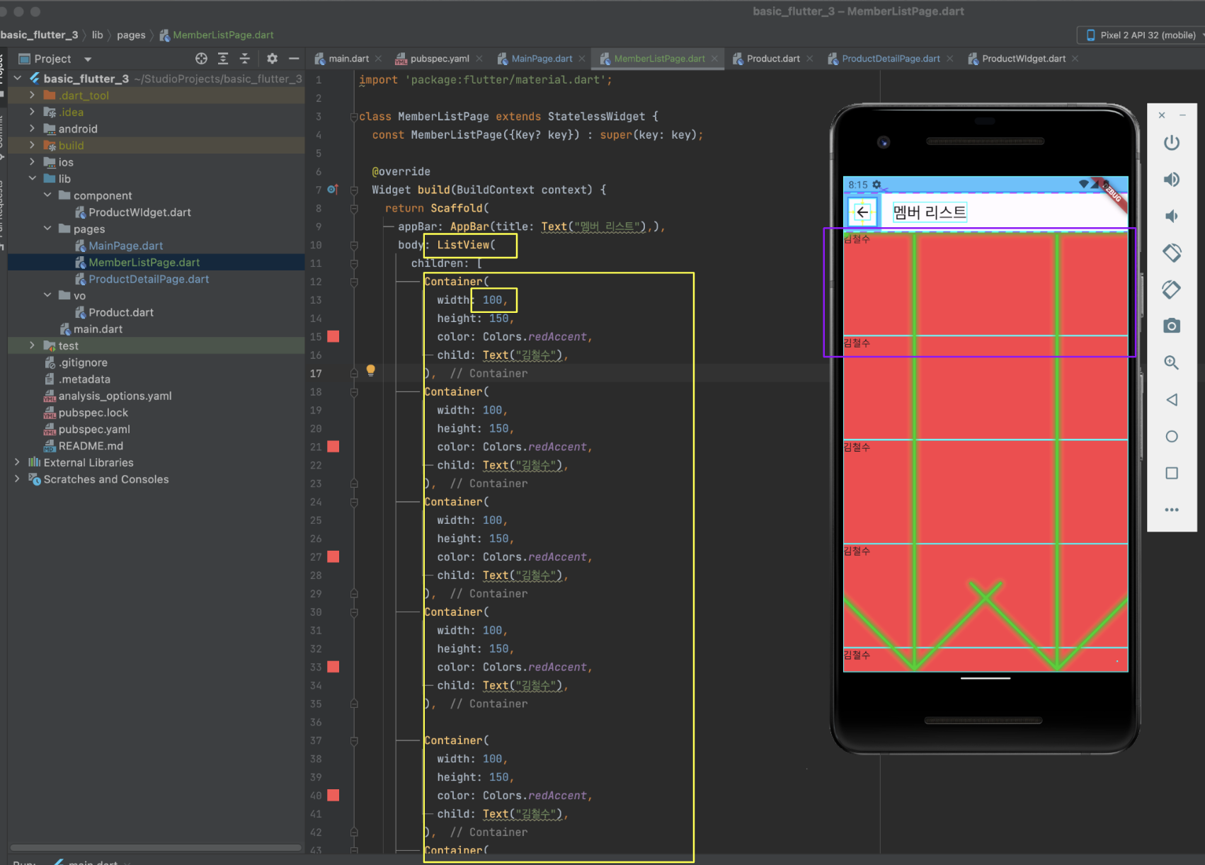 MainPage.dart 의 상품들의 리스트를 보여주기위해 적었던 코드를 보면 상품부분이 중복되는것을 볼수있습니다.
