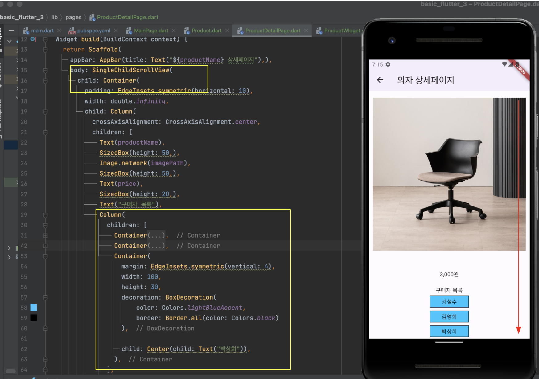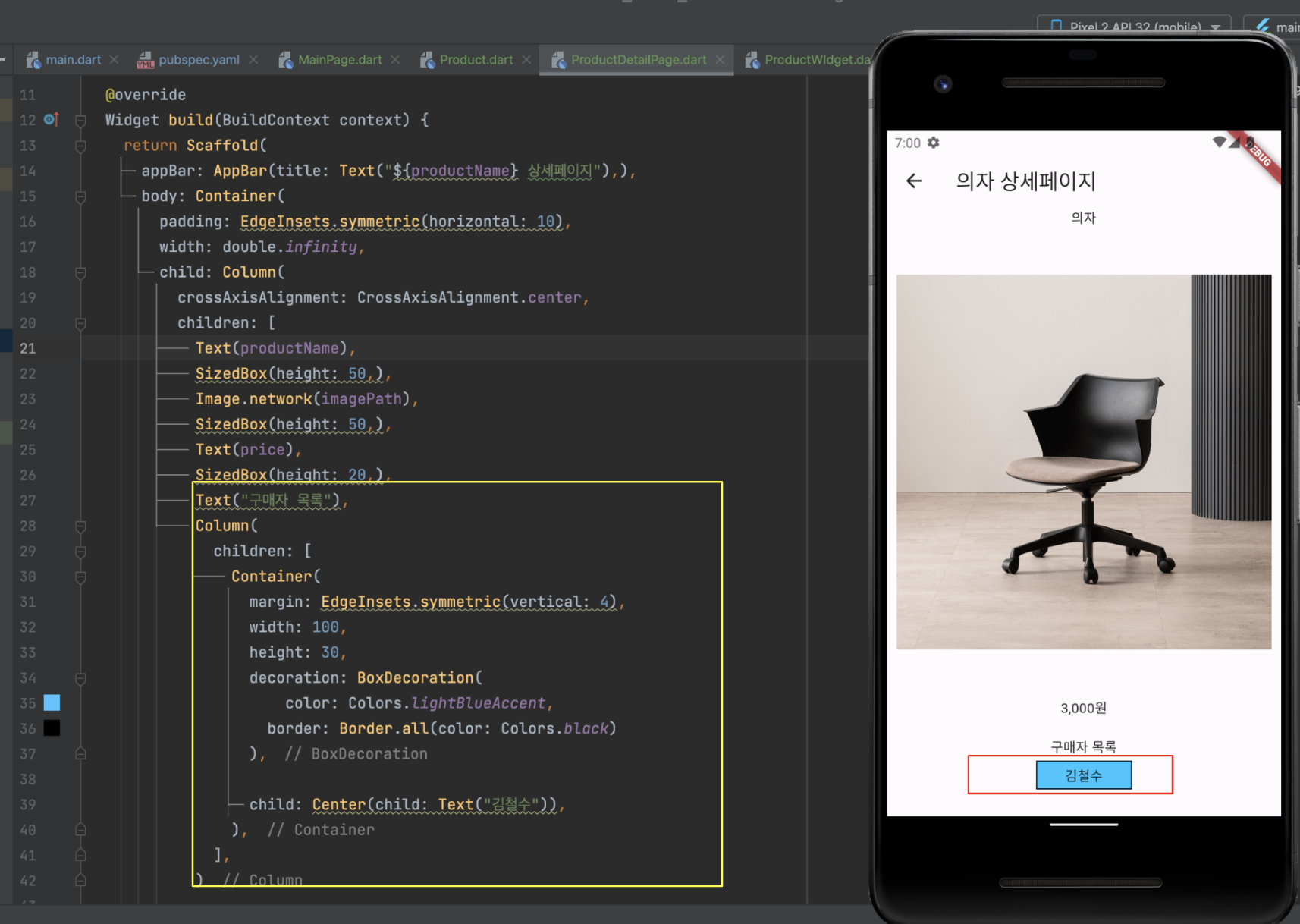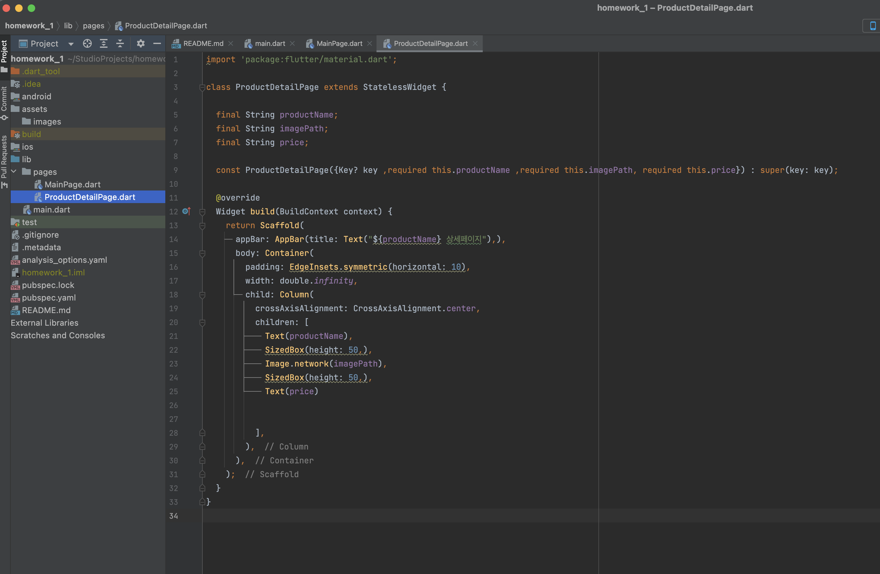 ProductDetailPage.dart 파일의 내용입니다.