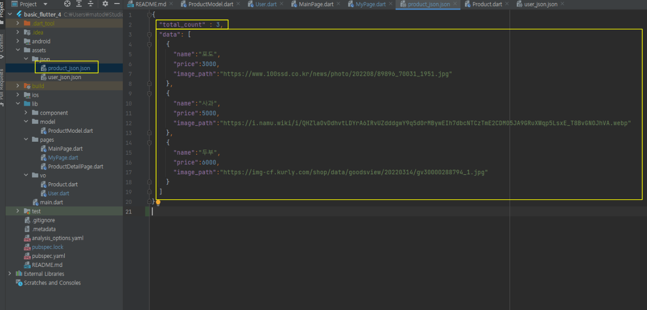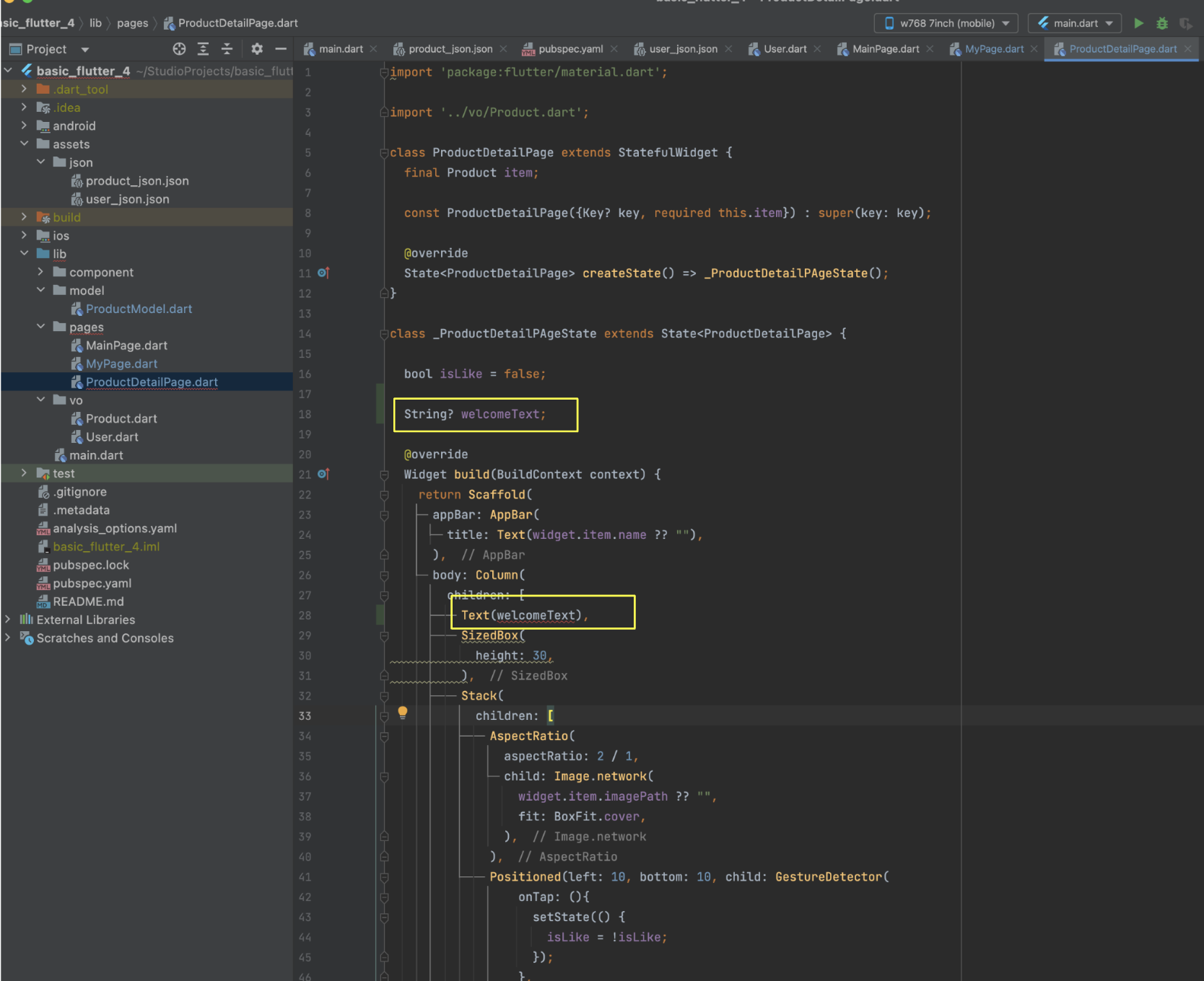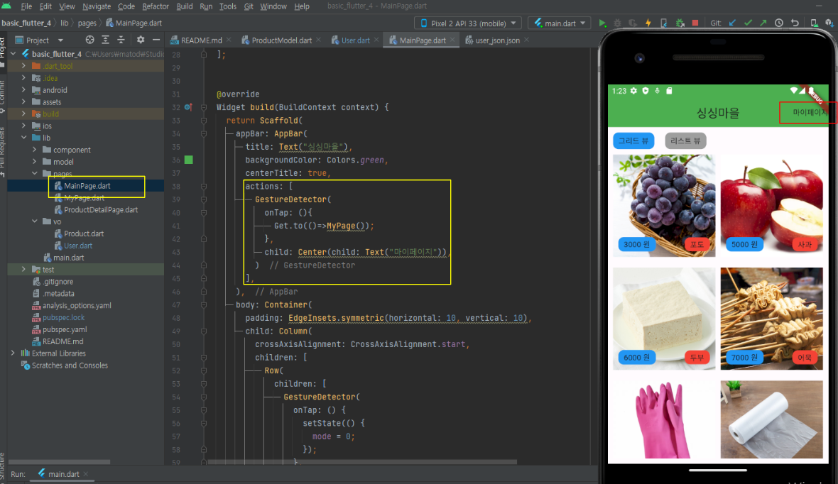 pages : MainPage.dart , ProductDetailPage.dart (2개)