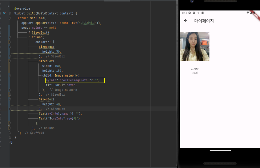 그리고 build 부분에서 사용할때 widget.item.imagePath 형태로 사용했습니다.
