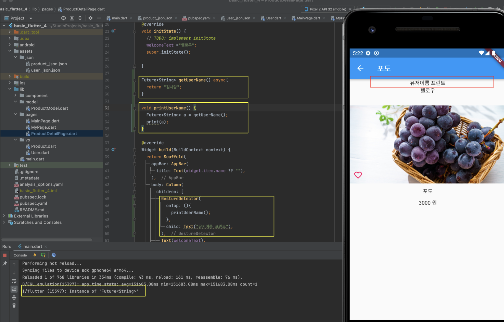 그리고 실행시켜보면 Instance of 'Futrue<String>' 이라는 것이 나오게 됩니다.