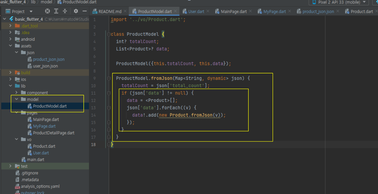 pages : MainPage.dart , ProductDetailPage.dart (2개)