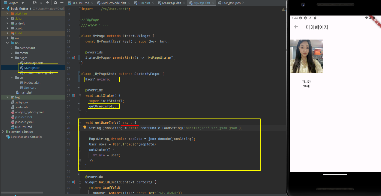 MainPage.dart 파일의 내용입니다.