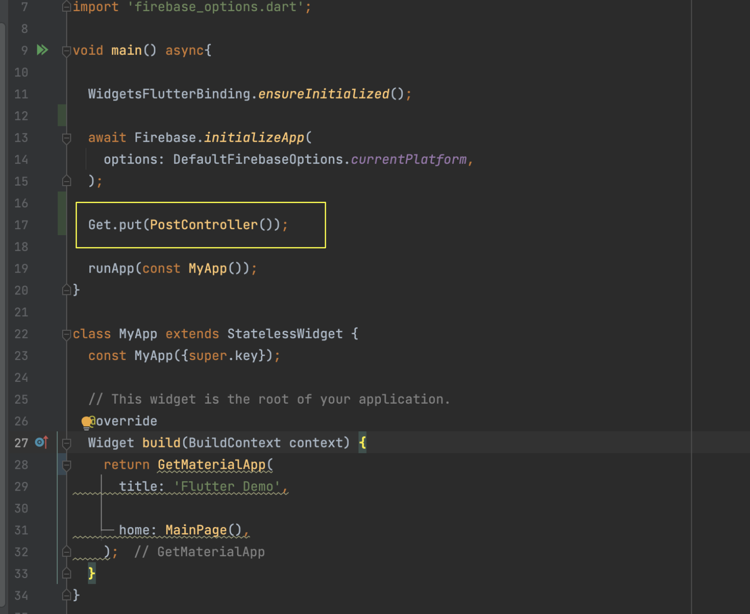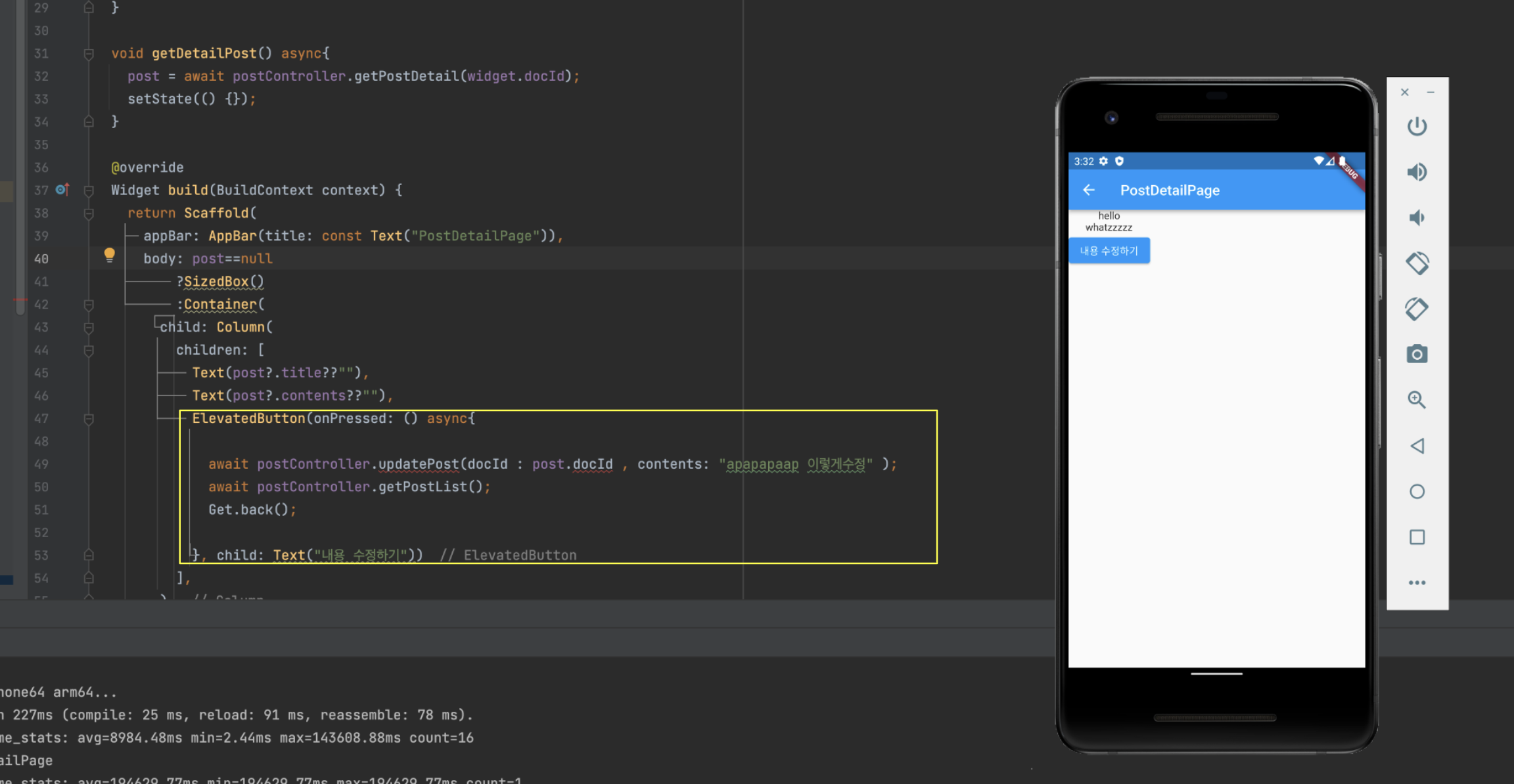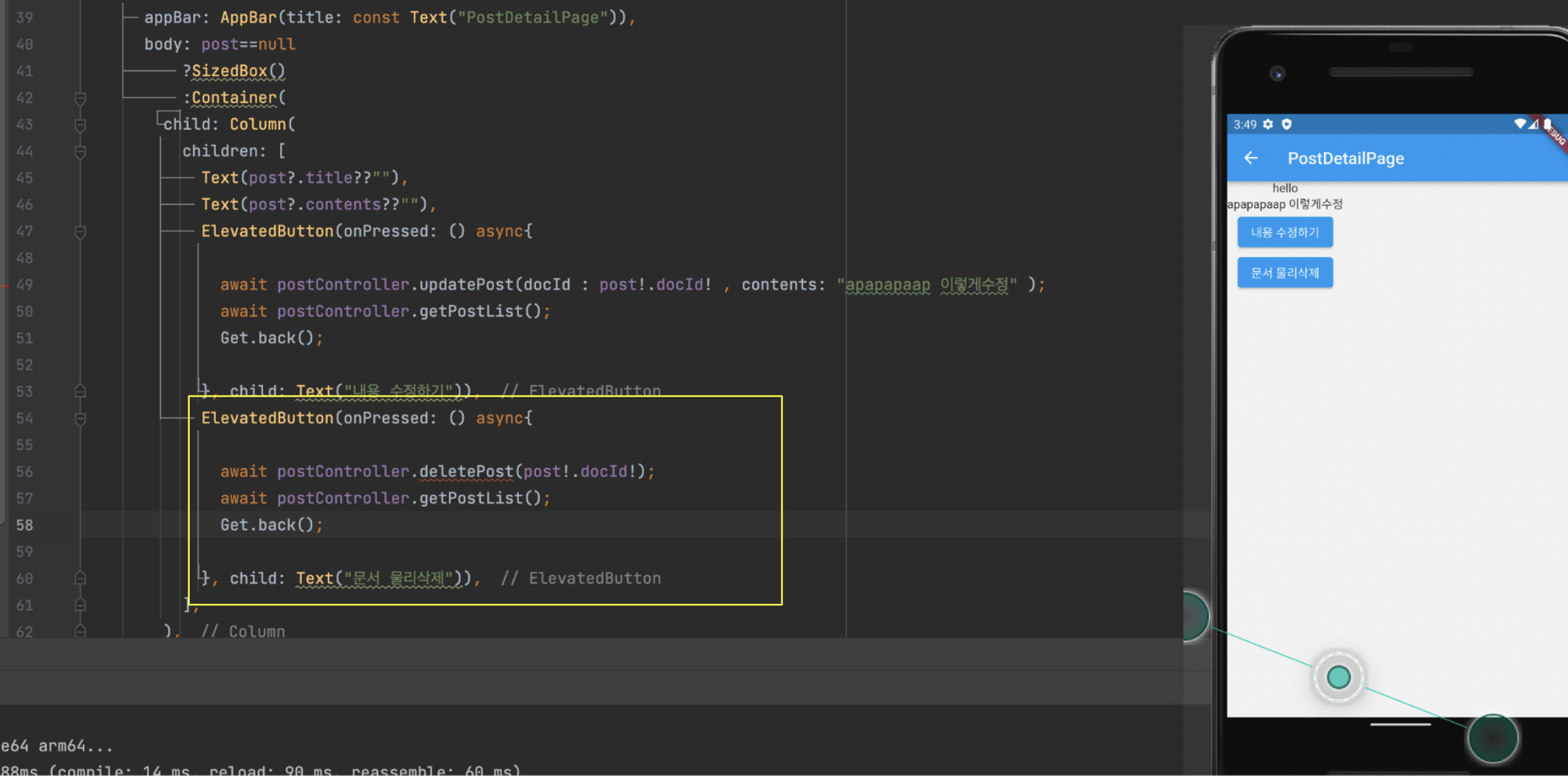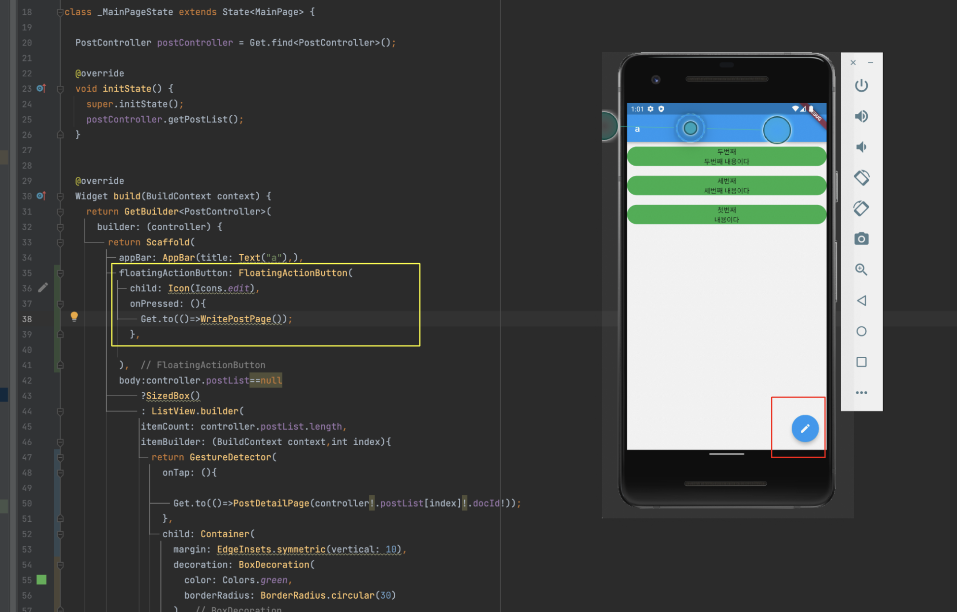 그래서 writePost가 작동해서 데이터베이스에 값넣는게 완료되면, 다시 postList를 불러와서 postlist를 갱신해주게 했고, 그작업이 끝아면 Get.back을 통해 WritePostPage에서 벗어나도록 했습니다.