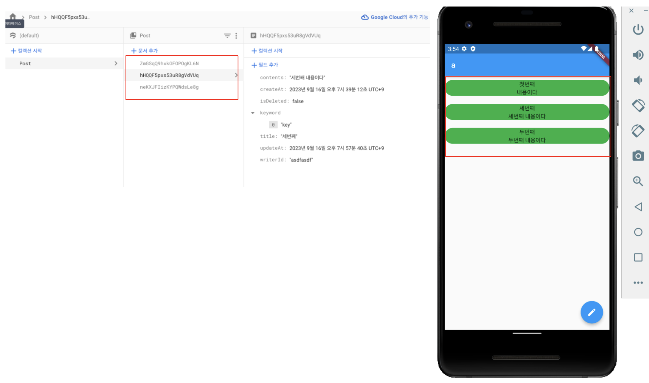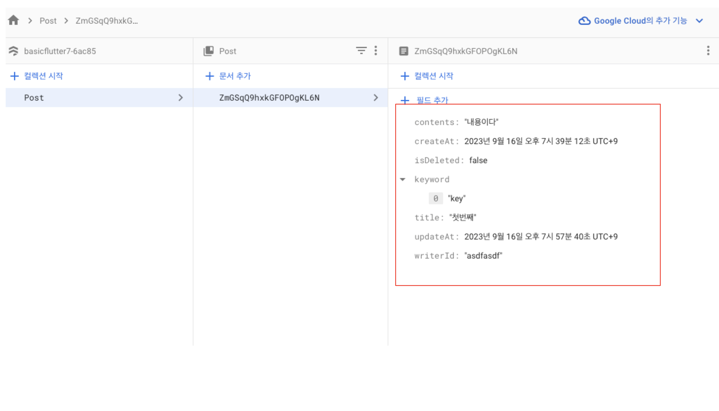 이렇게 firestore를 이용하여 CRUD 를 모두 해보았습니다.