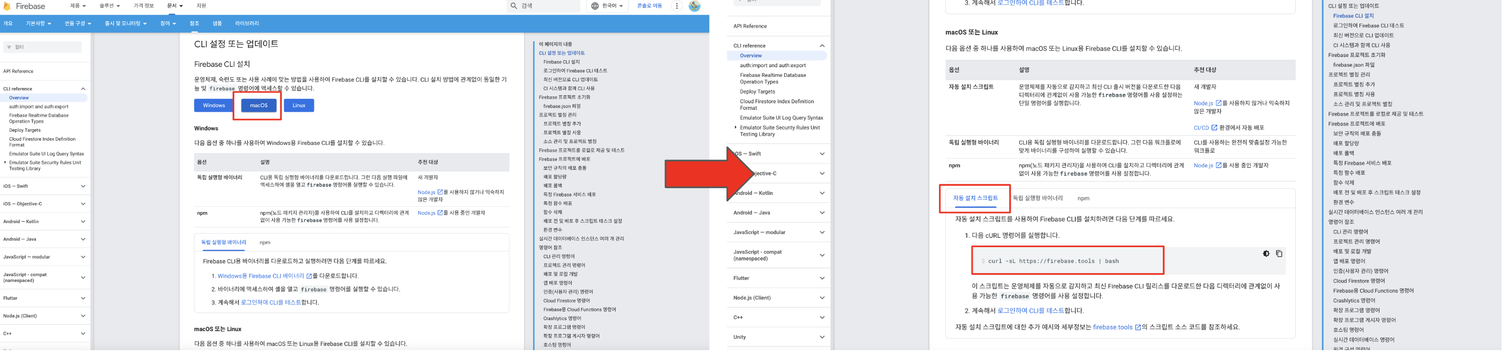 Firebase CLI 설치 및 로그인이라고 친절히 링크 걸어준거 눌러가보면