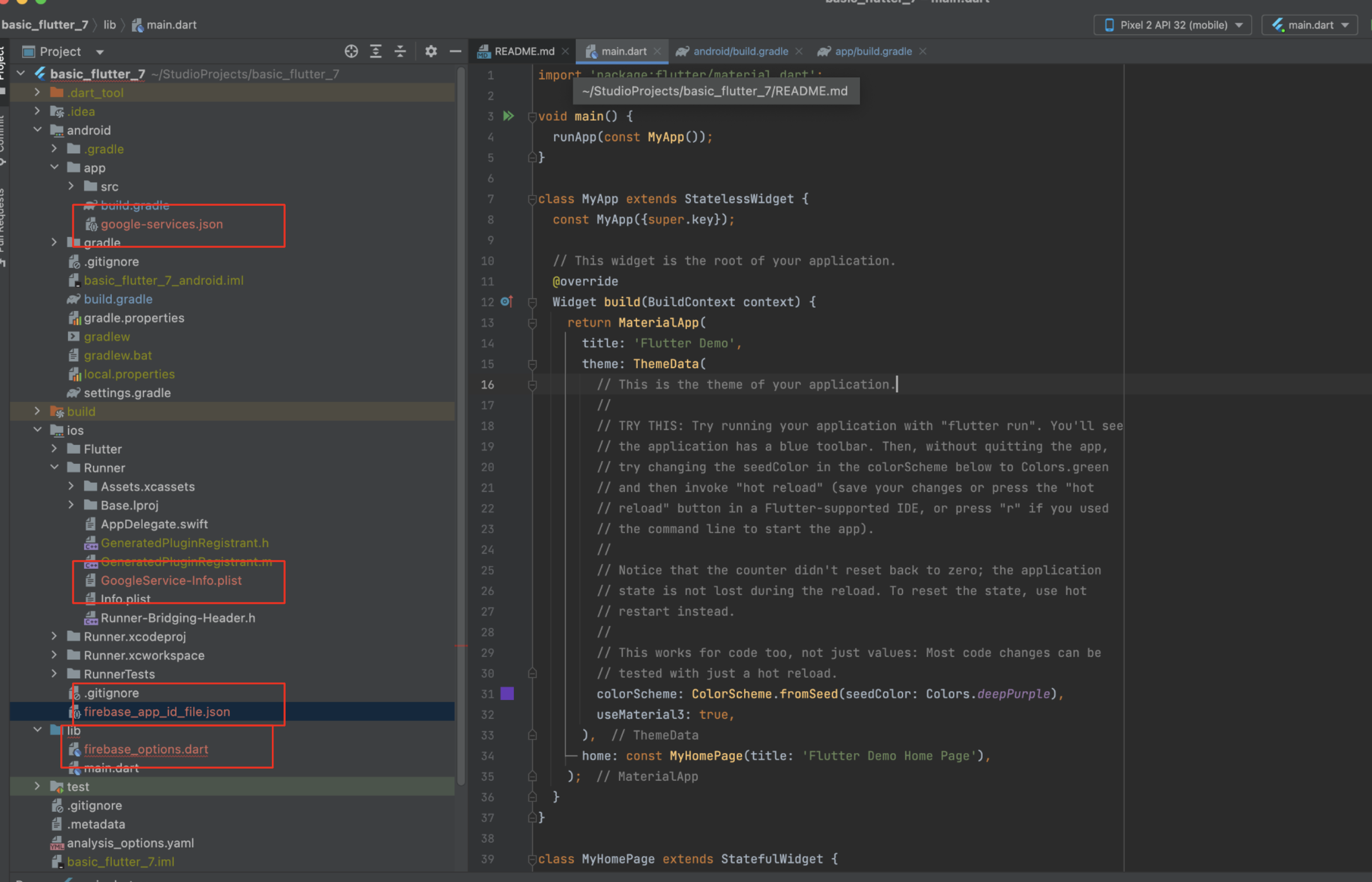 그리고 안드로이드의 gradle설정과 ios의 세팅부분이 자동으로 들어가게됩니다.
