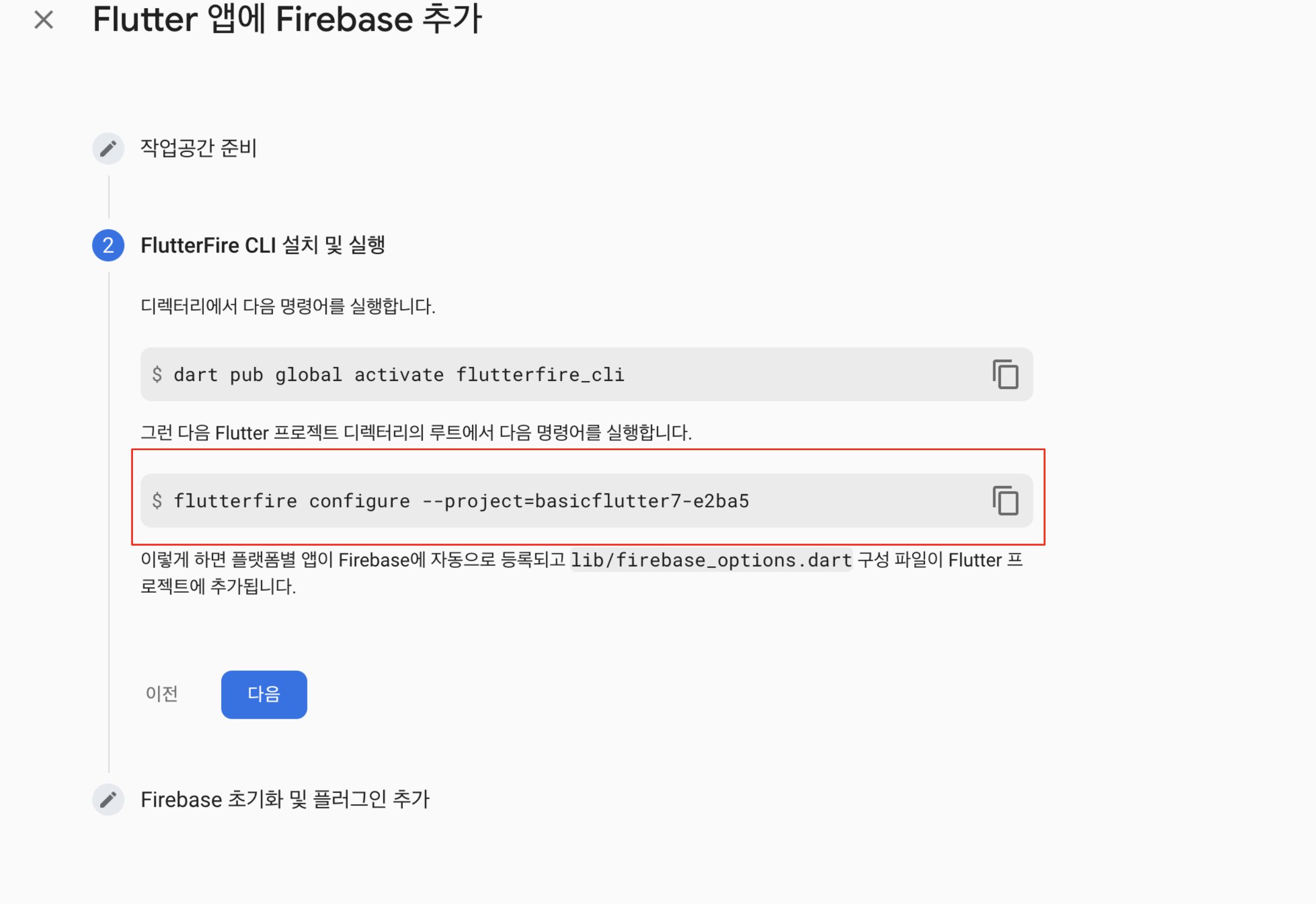 4.우리 flutter 프로젝트에 명령어로 연동하기