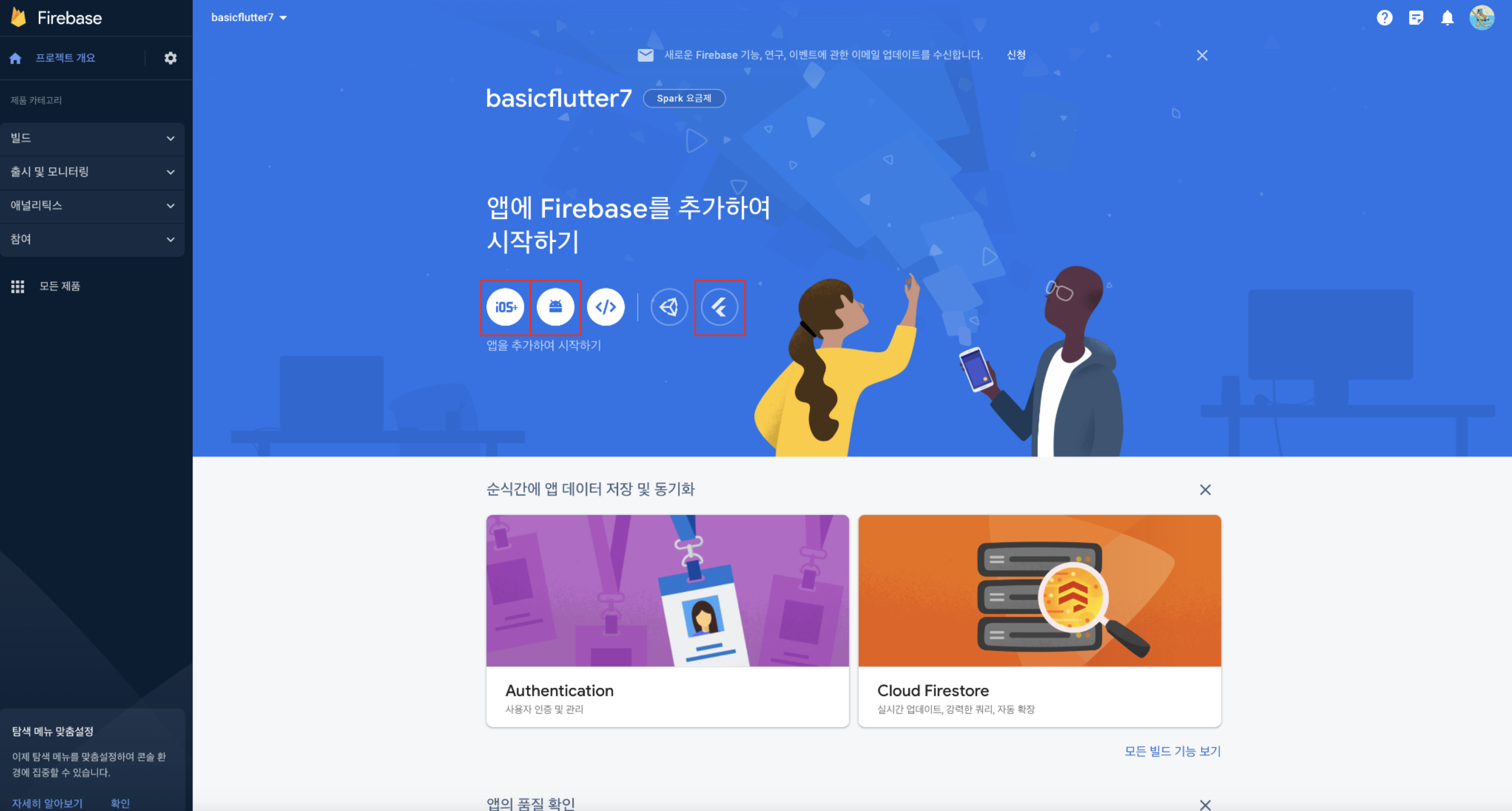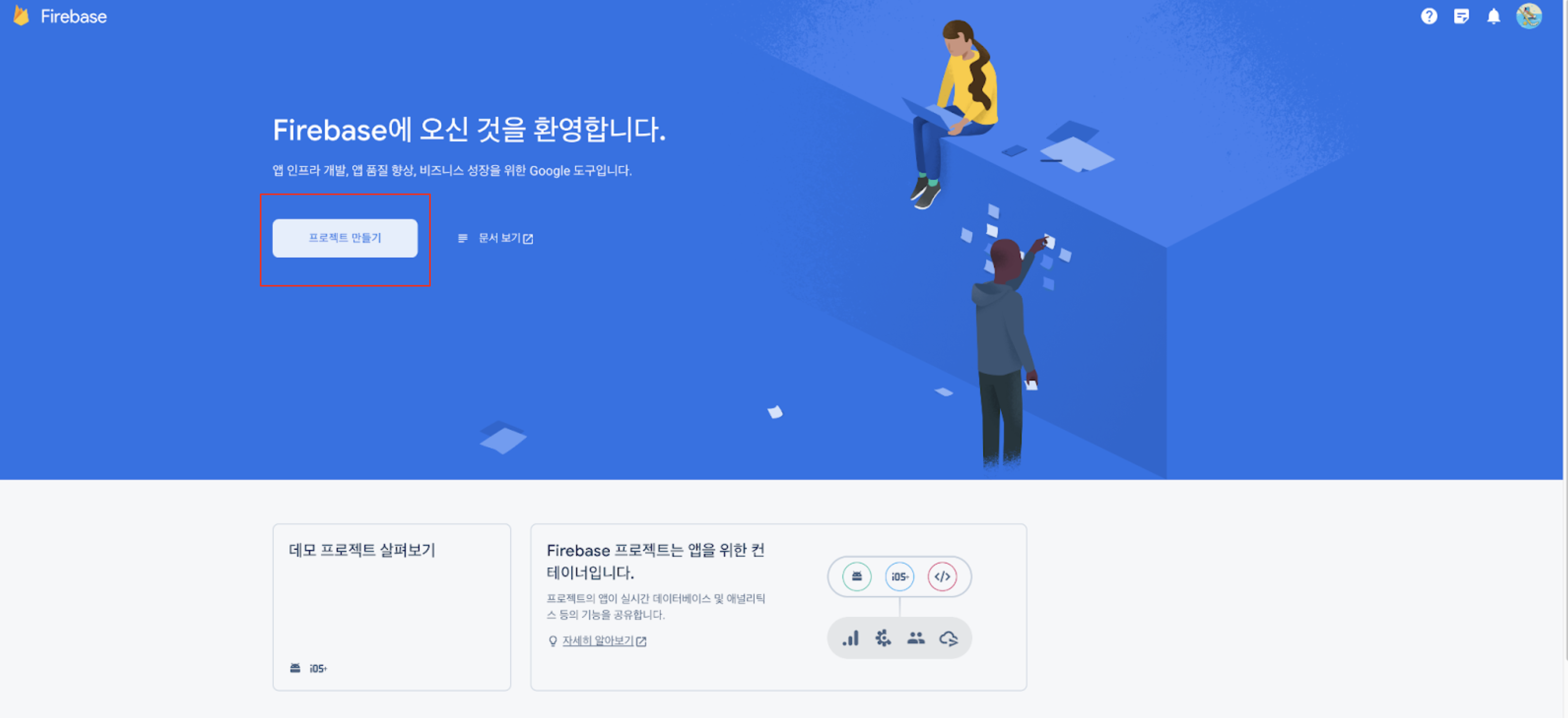 생성이 되면 이 firebase 프로젝트와 연결할 어플리케이션을 등록해야합니다.