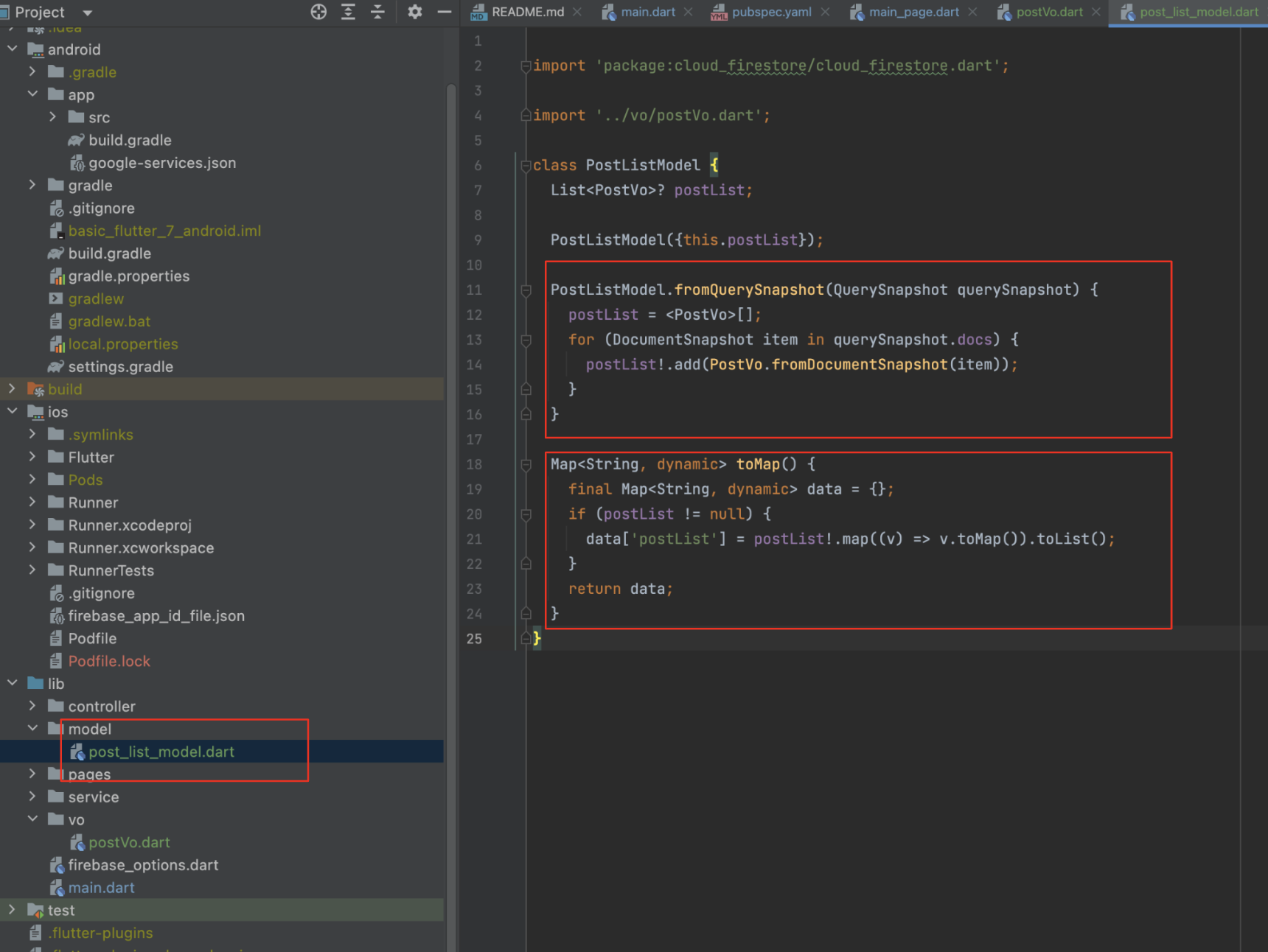 5. PostListModel의 .fromQuerySnapshot에 QuerySnapshot을 넣어줌