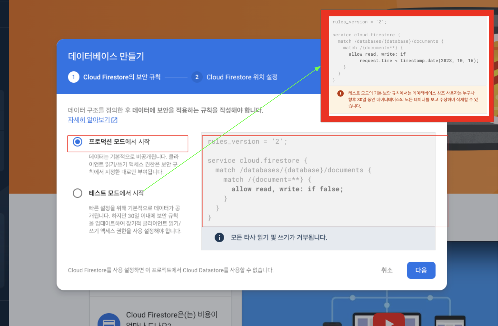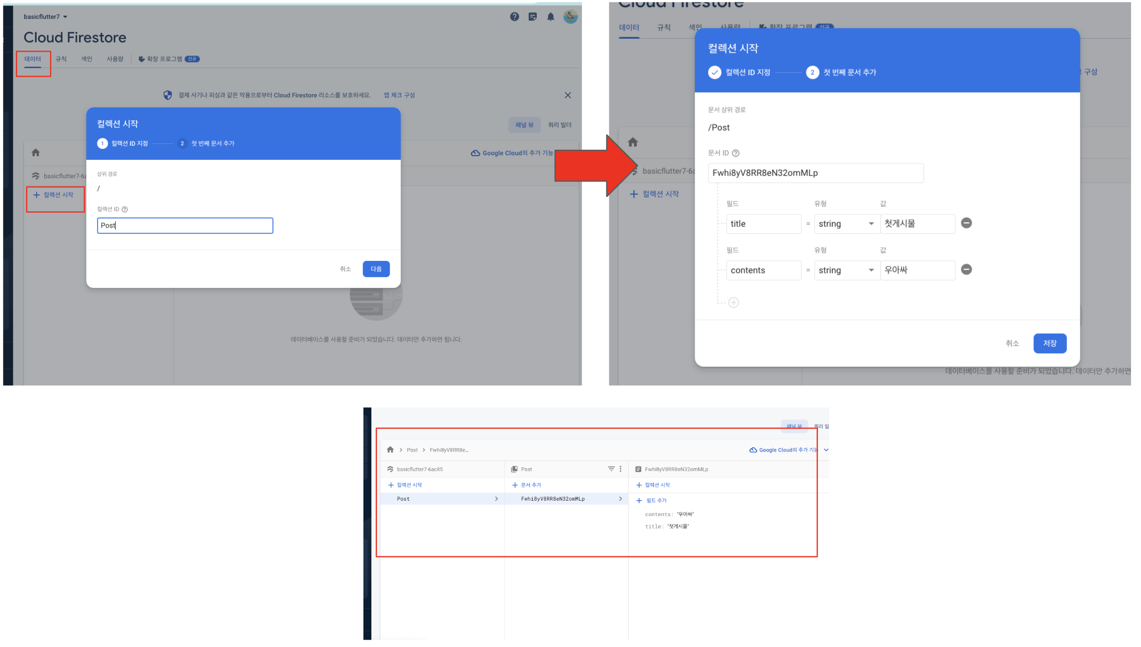기초설정은 firebase를 사용하기위한 프로젝트 세팅이고 ,