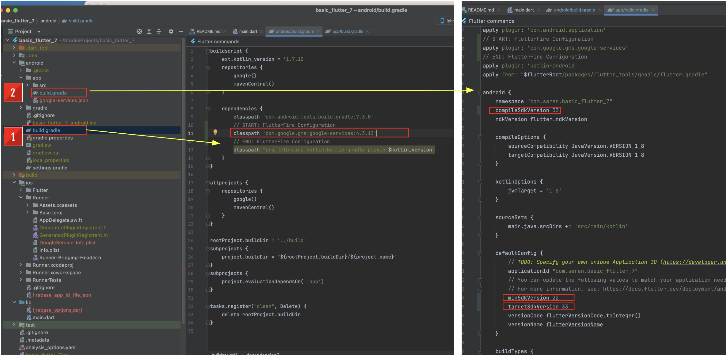 (google.service.json 다운받아서 안드로이드 ios에 설정해주기, 안드로이드 gradle설정해주기, ios 세팅 설정해주기 등등)