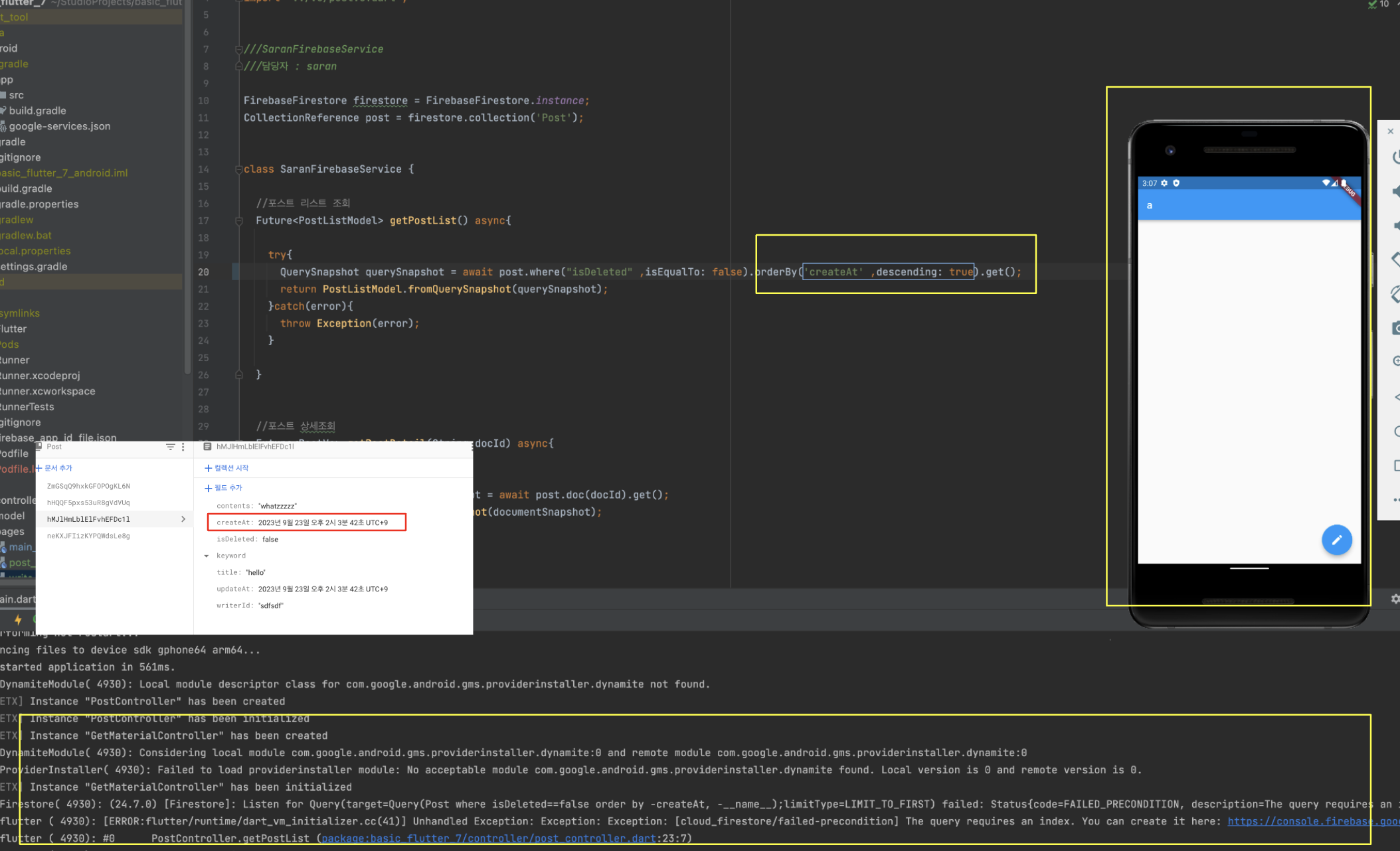 그래서 리스트를 불러오는 쪽에가서 orderBy("createAt") 으로 해줍니다.