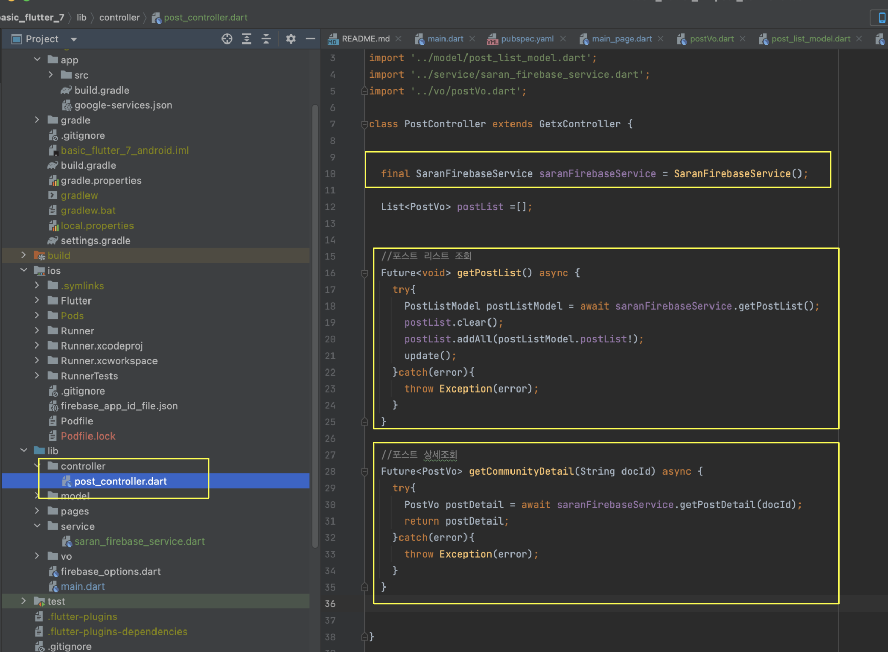 2. 우리가 만든 FirebaseService의 getPostList 호출 -> FirebaseService에 있는 getPostList가 실행됨