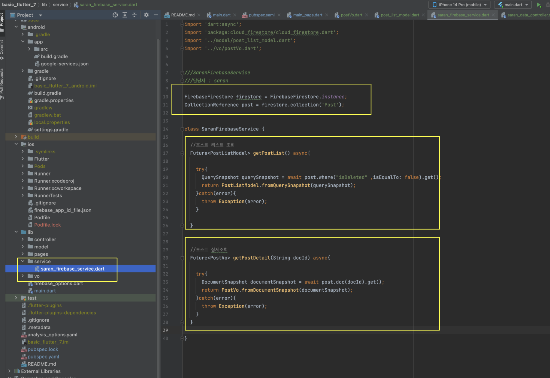 8.만들어진 PostListModel을 firebaseService에 보내줌