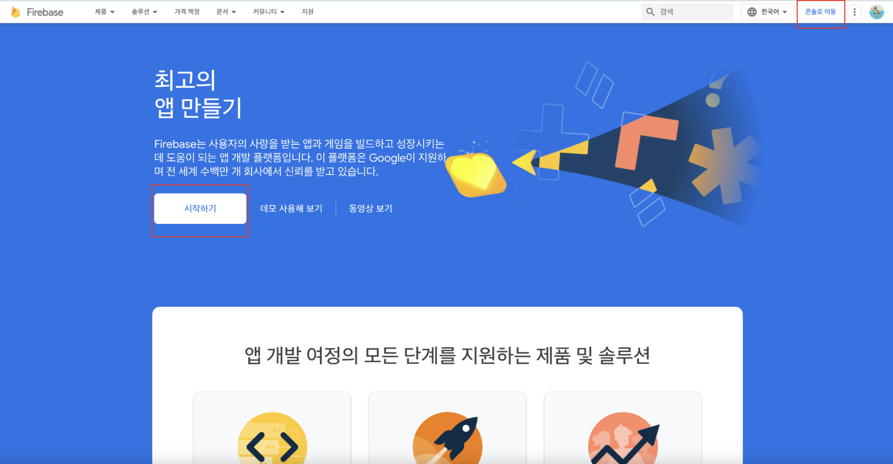콘솔로 이동 , 또는 시작하기를 눌러주세요.