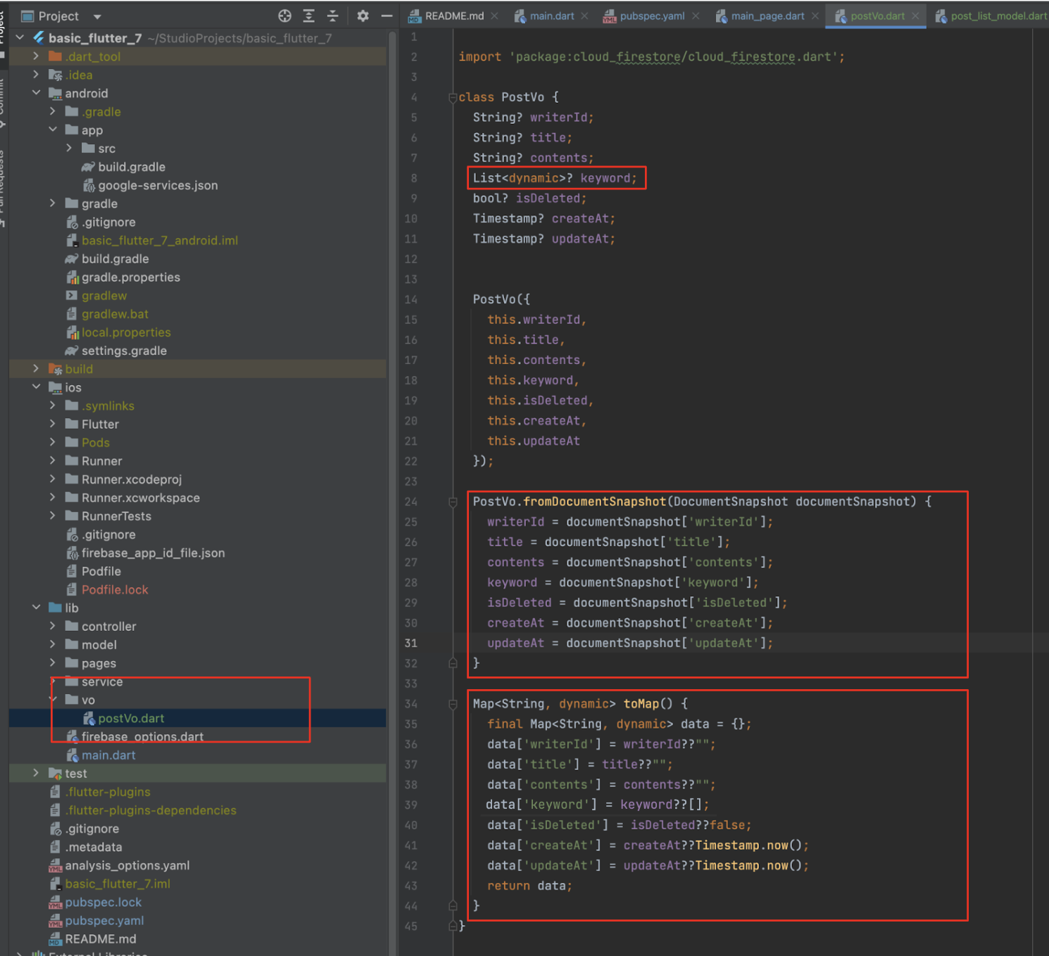 6. querySnapshot이 n개의 DocumentSnapshot이 있기때문에 for문을 돌면서 PostVo의 fromDocumentSnapshot에 DocumentSnapShot을 넣어줌