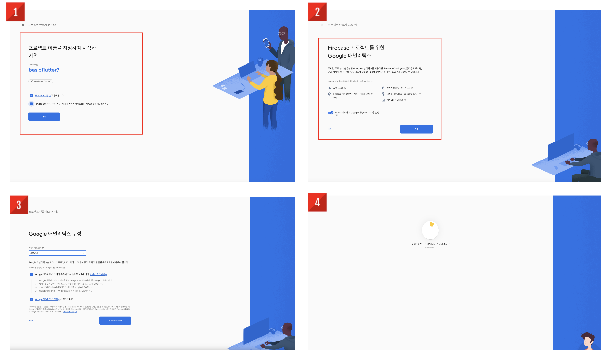 1. 프로젝트 이름 지정하세요. 이건 flutter의 패키지이름과는 상관없고, 자신이 알아보기쉬운걸로 지으면됩니다